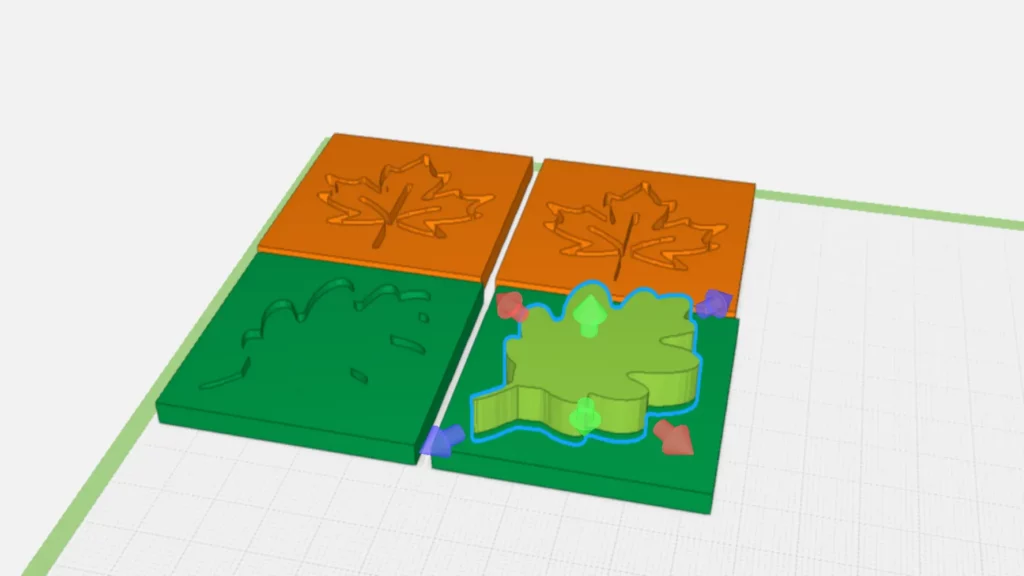 Tipp: Du kannst sogar einen Plätzchenstempel integrieren. Stelle dazu deine Zeichnung fertig und generiere die Extrusion. Wähle nun die innenliegenden Teile deiner Zeichnung und verringere die Höhe etwas mit den grünen Skalierungspfeilen. Ein bis zwei Millimeter sollten dafür schon ausreichen. Konstruiere nun Stege, die die Außenhülle deines Plätzchenausstechers mit den innenliegenden Teilen verbinden. Achte dabei darauf, dass diese Stege noch flacher sind, als die innenliegende Teile deiner Plätzchenform. Verbinde nun alle Teile miteinander und fertig ist eine Plätzchenform.